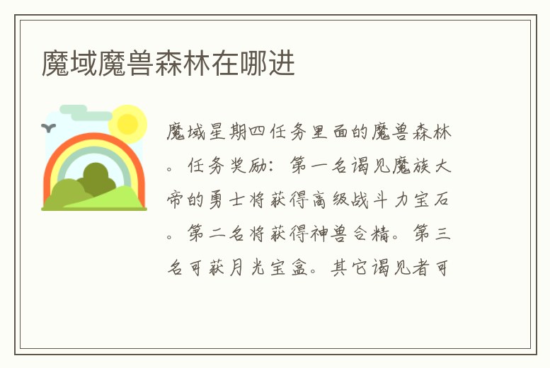 1、魔域魔法森林怎么去如果你70级可以先从雷鸣直接传送到海岛,然后找旅行商人对话到火山(坐标1017,1039)如果不够70级,只能先按照雷鸣-戈壁-沼泽-海岛-火山这个路线走了``。