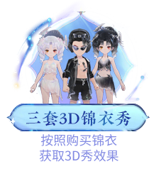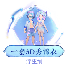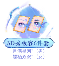 b. 获得全色系“浮生绡”系列锦衣(包含上衣、下衣和头饰)以及限定武器“浮尘一梦”后可获取限定永久彩饰“花影迷离”、全新双人交互动作“化蝶飞”、3D秀妆容六件套“月满星河”(男)/“蝶栖双双”(女)、3D限定场景“星汉灿烂”;