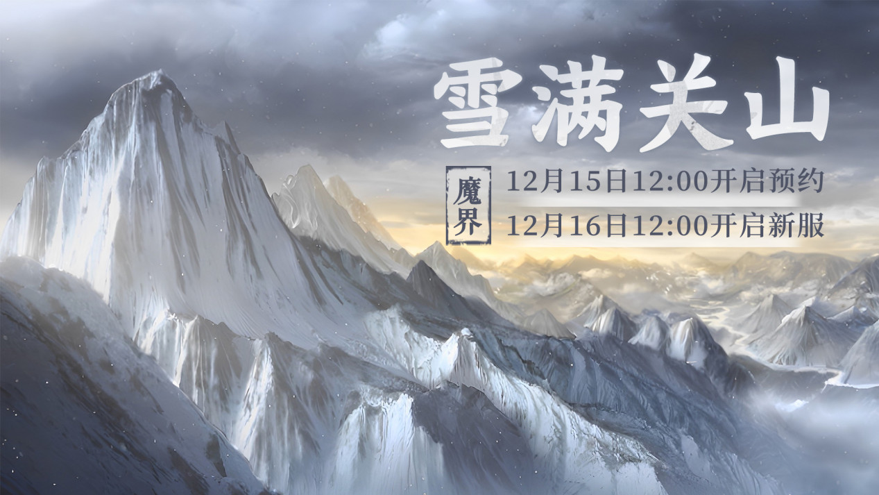 12月16日中午12:00,《大话西游2经典版》开启新服【雪满关山】。12月15日12:00起,侠士们便能够进入游戏,在新服中预约创建角色。