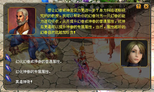 初始值幻化是百分百成功的,而且在幻化时可以先行预览幻化后的初始值。幻化成功后主幻兽回到一级,以新的初始值重新开始。副幻兽消失。