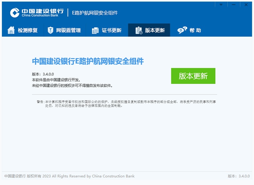 ②确保安装3.3.8.0及以上版本的E路护航网银安全组件,请点击“E路护航”下载我行最新版E路护航网银安全组件。