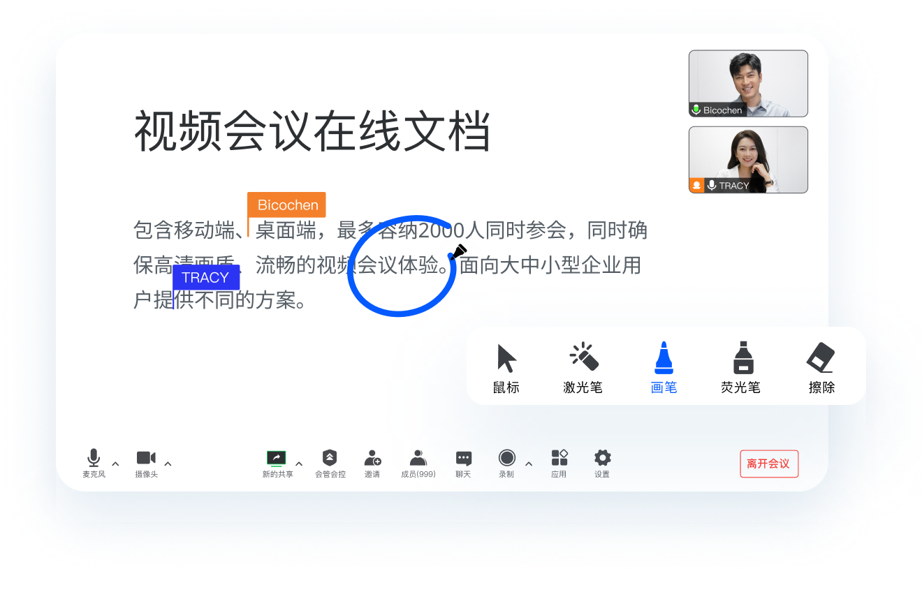一键共享手机、电脑屏幕,与您的好友在线批注内容,会议信息便捷保存