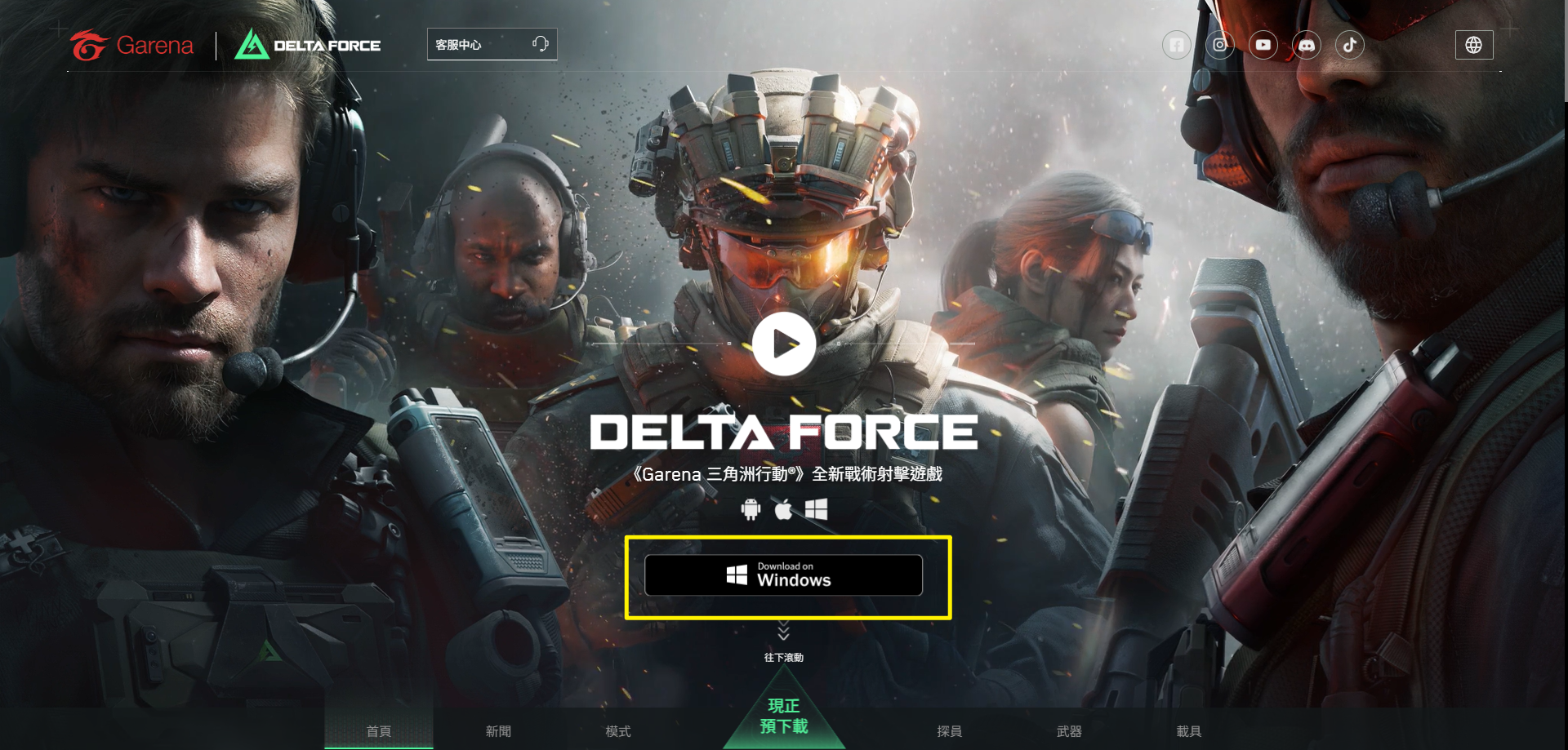 步驟1:前往《Garena 三角洲行動®》官方網站(這裡)。