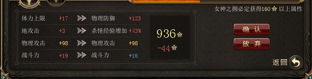 虽然会多费点圣力值但是属性不会掉了,当然要想少花圣力多刷高属性那就努力升女神的圣阶吧,因为圣阶越高刷出好属性的几率就越大,女神的四个随机天赋单个的满分是200,女神一阶时是必定获得0以上的属性,以后每升一阶就加20,等女神十阶的时候就必定获得180评分以上的属性了,也就是说女神十阶的时候刷出来的属性都是在180到200评分之间(包括180评分和200评分)。