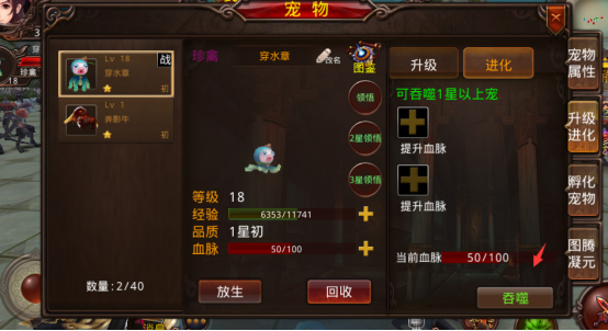 宠物通过不停的吞噬其它宠物血脉可进化为高级宠物