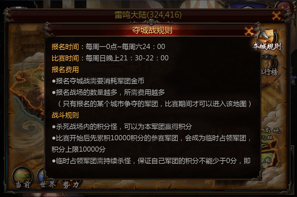 ·只有报名参与城市争夺的军团,才可在比赛期间进入该地图。