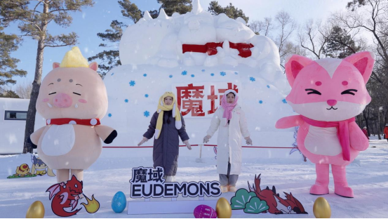 “魔域”IP中幻兽造型“嘟嘟”“佩佩”“哈姆特”以雪雕形象“现身”雪博会