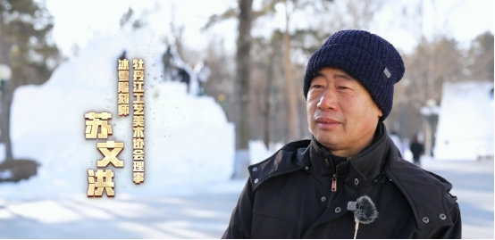 牡丹江工艺美术协会理事、冰雪雕刻师苏文洪带领团队打造哈尔滨文旅与“魔域”IP联名雪雕