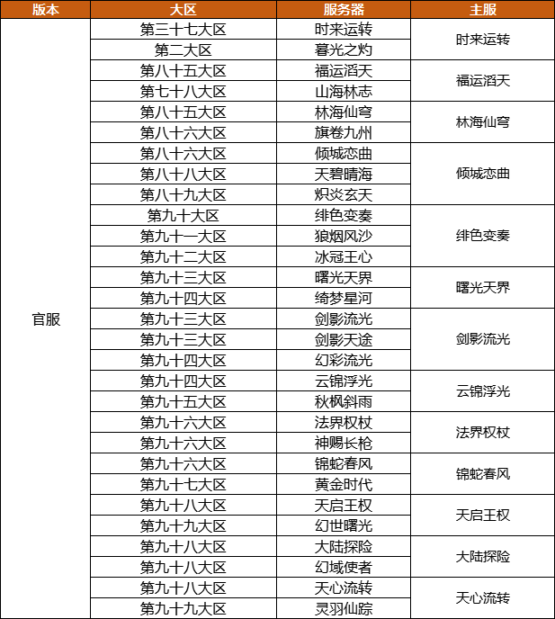 具体互通的大区服务器列表如下: