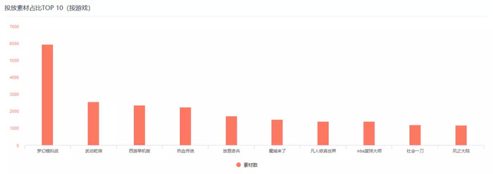 按照投放素材数划分,8月投放力度TOP10的游戏产品分别是《梦幻模拟战》、《武动乾坤》、《西游单机版》、《热血传说》、《放置奇兵》、《魔域来了》、《凡人修真世界》、《nba篮球大师》、《社会一刀》、《风之大陆》。