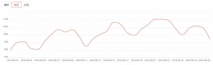 具体来看,8月份手游买量素材每天的投放量保持在1万6以上,单日最高投放量为28215,而6月份的投放素材数在8000到1万2之间上下浮动,在月末甚至跌至6213;8月份每天参与买量的游戏数基本保持在900款以上,单日最高参与买量的游戏有1105款,相较6月份增加了312款;8月份每日参与买量的公司保持在300家以上,单日最高参与买量的公司数为360,与6月份相比增加了41家。