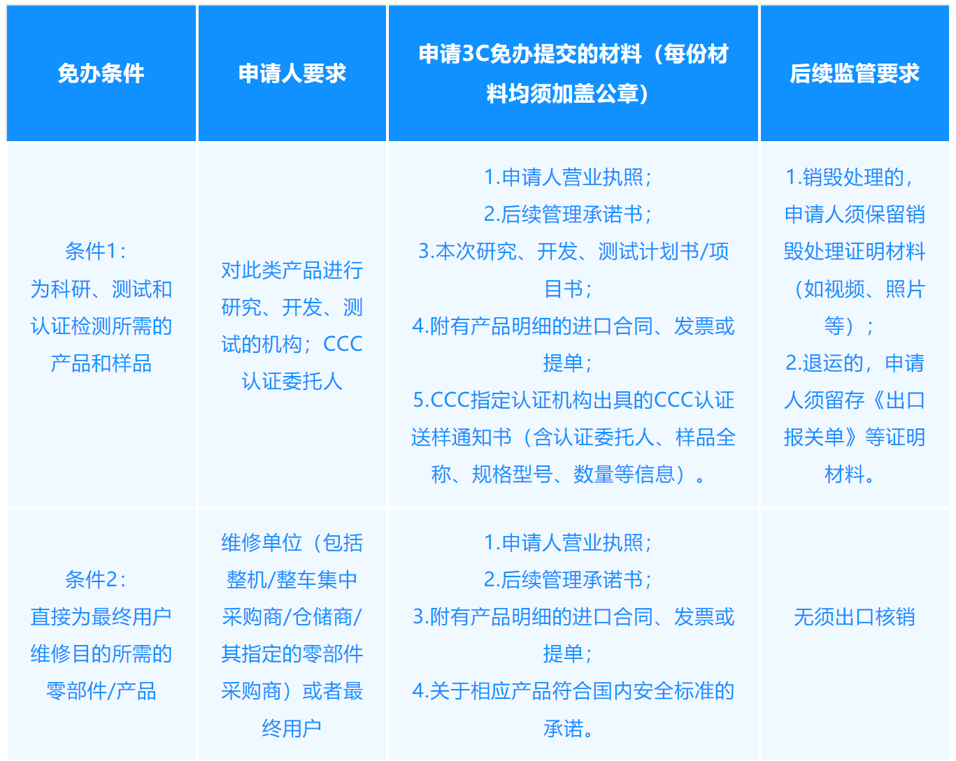 3C免办是免予办理强制性产品认证的简称,是一项适应国际贸易发展的便利化措施。