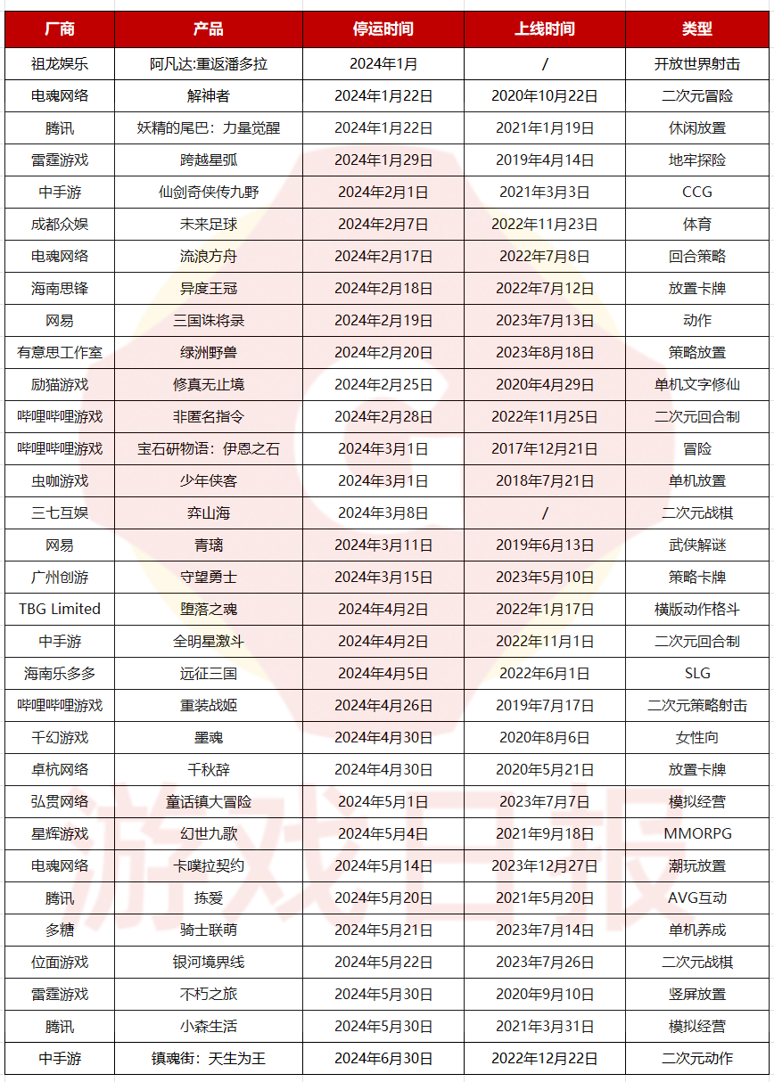 qq魔域官方网站下载中心32款已经倒在2024年的游戏:涉腾讯网易B站,有产品运营时间不到半年