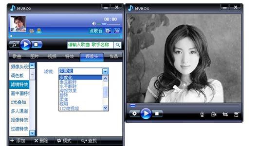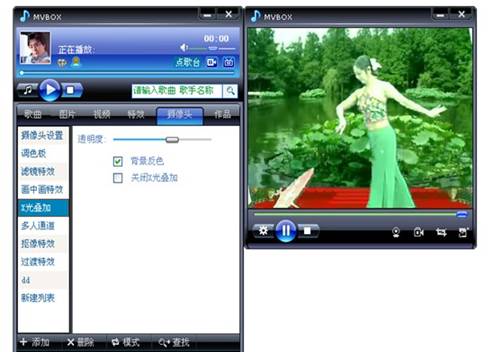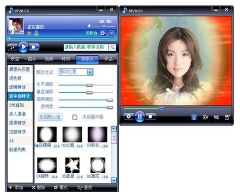 MVBOX添加播放图片、视频素材 MVBOX怎样使用特效、滚动字幕、歌词字幕点击“特效”标签列表,切换到特效操作界面如图所示: