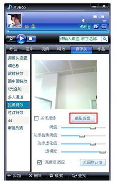 (2) 请离开摄像头的拍摄范围,然后单击“截取背景”按钮,拍摄一张只包含背景的画面,作为抠像的背景。