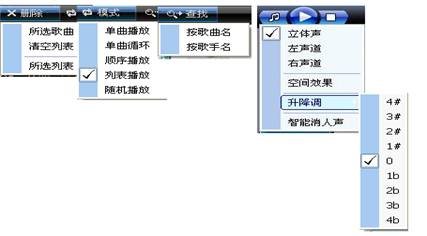 歌曲编辑播放模式系列菜单图示:(点击相应的按钮切换菜单)