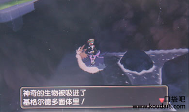 骷髅队基地门口与骷髅队(LV34鬼斯通,LV34催眠貘)战斗,胜利后大叔出现帮主角打开了门…门内居然是一座城镇,这就是魄镇了吧~大雨瓢泼,骷髅队设路障封路,PC中心也被占领,恢复要收10元。注意从两侧的小洞进入向前,与骷髅队手下不断的战斗,中间右侧有神奇糖果,左侧有基格尔德细胞。