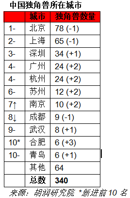 在中国,独角兽分布较多的城市,分别是北京、上海、深圳、广州,以及杭州、苏州、南京、成都等。