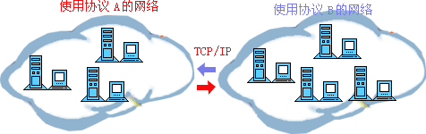 计算机网络协议同我们的语言一样,多种多样。而ARPA公司与1977年到1979年推出了一种名为ARPANET的网络协议受到了广泛的热捧,其中最主要的原因就是它推出了人尽皆知的TCP/IP标准网络协议。目前TCP/IP协议已经成为Internet中的"通用语言",下图为不同计算机群之间利用TCP/IP进行通信的示意图。