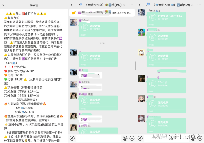 有些财大气粗缺时间的“老板”,会找一些中介购买代偷、代炸服务,其中的价格也从十几元到几十元不等;而陪玩、代养号也有每月几十到几百元元的价格;甚至官方出售的月卡、装饰品等,也都有“批发”后“零售”的贩子。