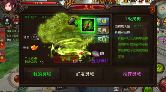 打开灵域,进行祈福,前10次是免费祈福,祈福可获得各种道具