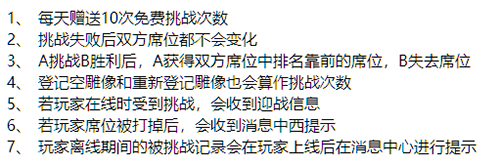 欲戴王冠必成承其重,名人堂的位置也不一定是完全安稳的。任意在名人堂中的玩家都有可能被其他人挑战,而当挑战者踢馆成功后,将获得相当多的奖励,名人堂中的席位也就归他所有了。