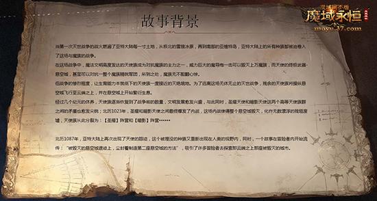 第一次灭世战争的战火燃遍了亚特大陆每一寸土地,从极北的雪狼冰原,再到南部的亚维特岛,亚特大陆上的所有种族都被迫卷入了这场与魔族的战争。在这场战争中,天使族成为对抗魔族的主力之一。战争的惨烈程度,让生育能力本就低下的天使族一度接近的灭绝境地。为了逃离这场无休无止的灭世战争,残余的天使族将操纵悬空城飞行至云端之上,并在悬空城上开始繁衍生息。