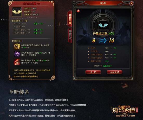 阵营对决,血性开战。37《魔域永恒》超炫羽翼,助你制霸战场,马上点击进入游戏,一起来感受魔幻大陆的战斗快乐吧!