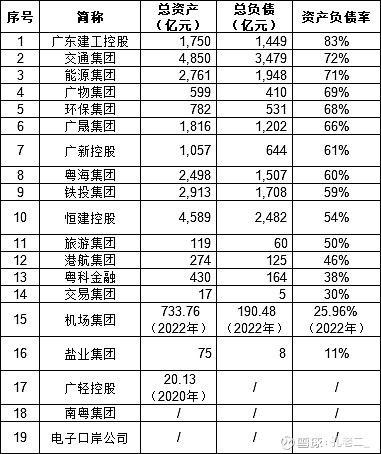 各省属企业2023年的资产负债率普遍较高,超过一半的企业资产负债率超过50%,其中资产负债率最高为广东建工控股的83%。