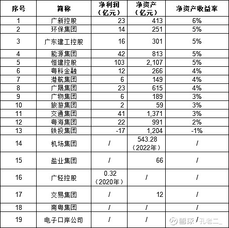 各省属国企净资产收益率均不高,超5%的只有1家——广新控股6%。