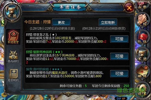 食材可以在击杀魔怪、BOSS时概率获得,而军团资金则通过与军团任务发布员李斯特对话,完成军团任务获得。