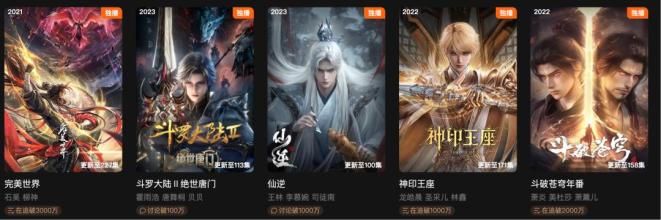具体来说,现在腾讯视频平台连载时间最短的年番《仙逆》也已经有 100 集了,其他年番甚至有150-200集。同样,阅文系IP改编还在做的也都不短,比如《狐妖小红娘》做到了第13季、《星辰变》第7季、《武动乾坤》第6季等。