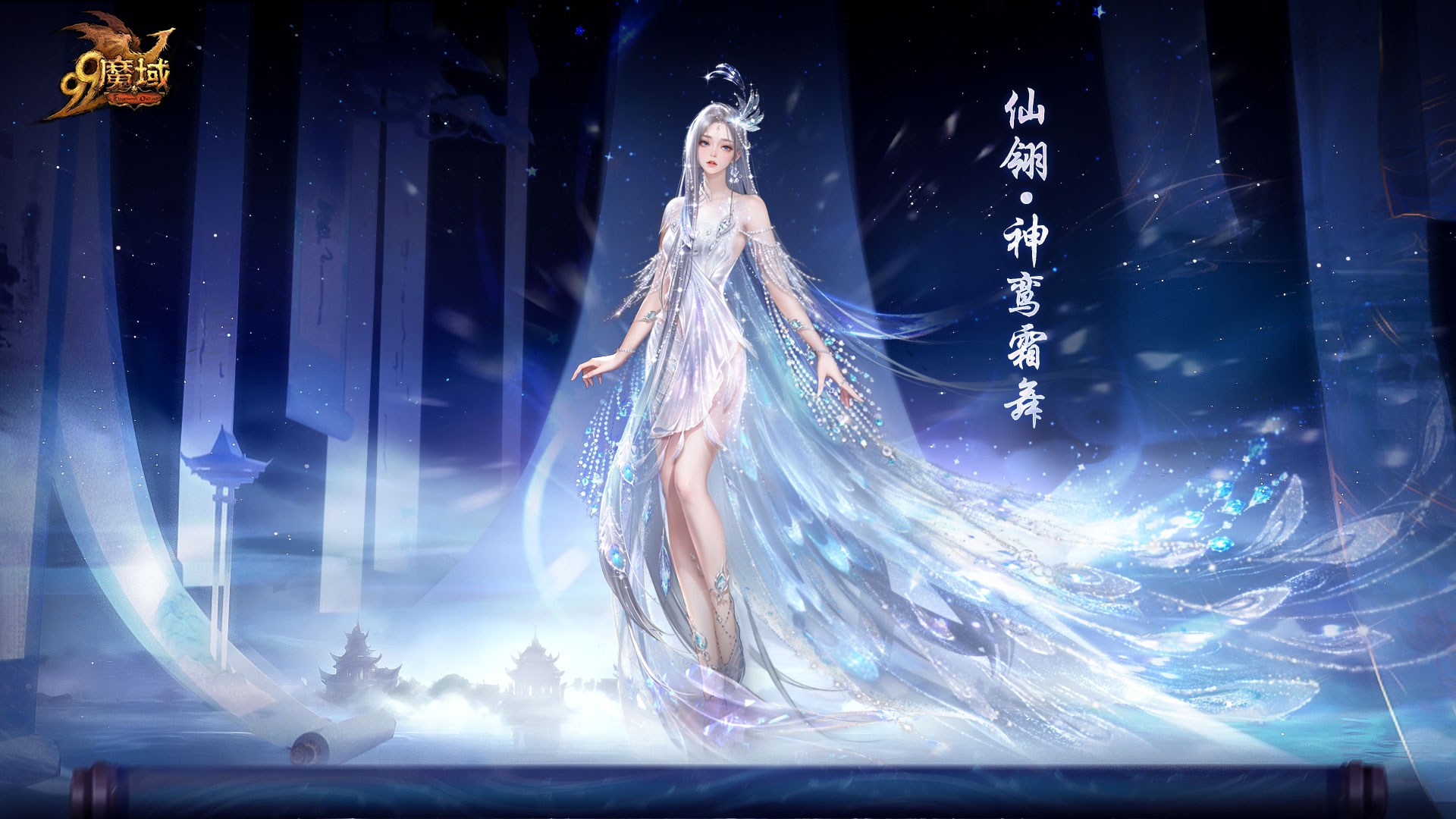 神鸾仙女,居于九天之上,玉骨冰肌,花颜绝代。星河之华光不及她纱裙璀璨,皎月之清辉不及她霜翎耀世,她于万千流光溢彩中翩然起舞,重霄万界,风华无双。