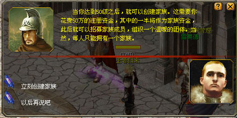 如果,你又是自由之身,未加入其他家族,那么恭喜你,你现在就可以以未来族长的身份去拜会雷奥德(卡诺萨城164,358),创建自己的家族了!