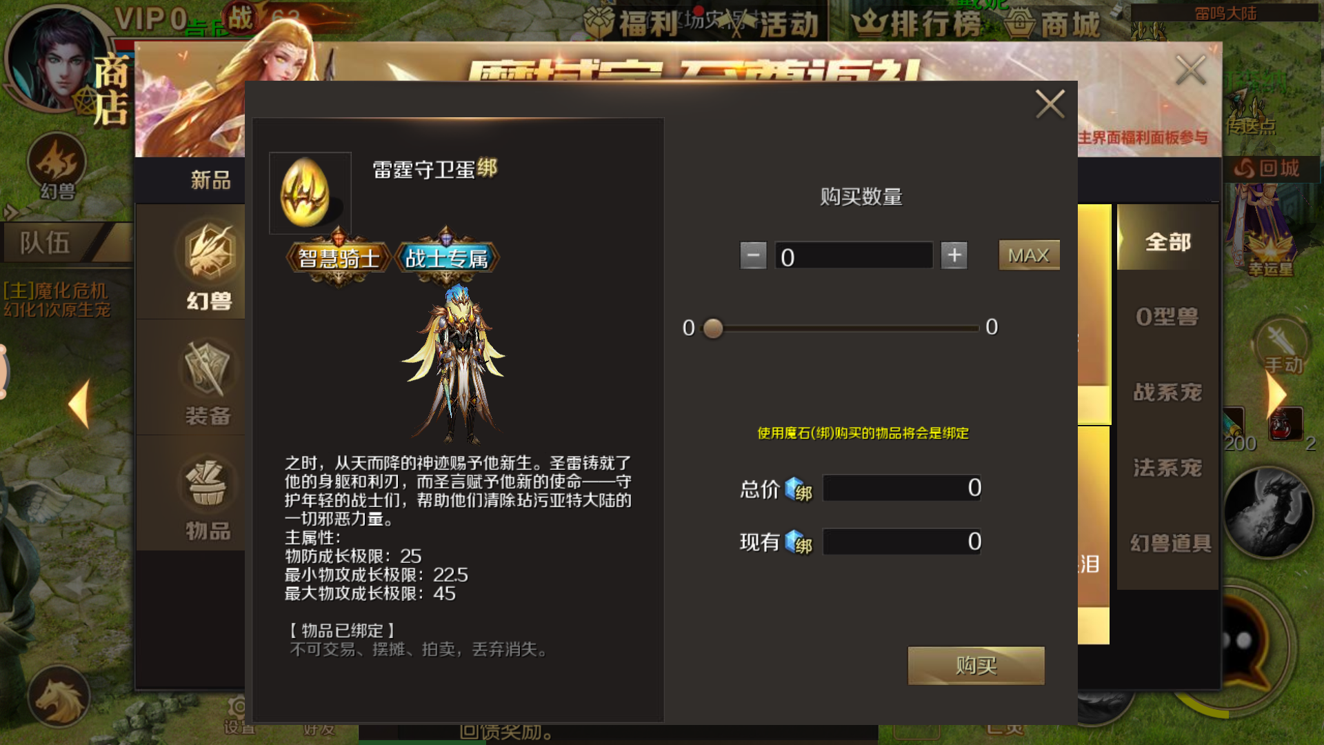 送的幻兽属性却不低,我们一起来看看战士职业送的雷霆守卫属性吧。雷霆守卫主属性为物防、物攻。其物防成长极限为25。最小物攻和最大物攻极限成长分别为22.5和45。