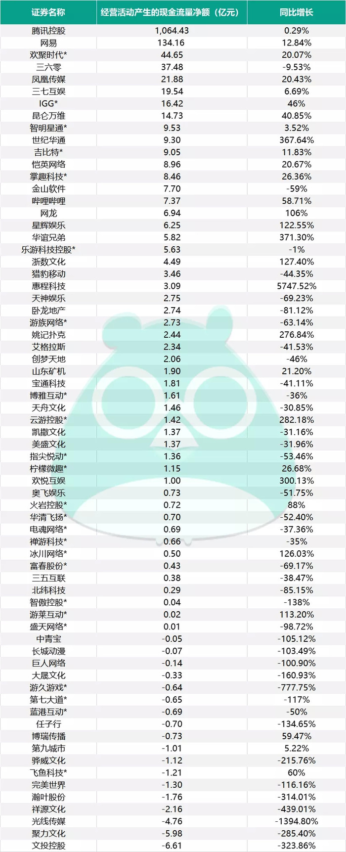 同时现金流为负值的企业共有18家,其中完美世界现金流为-1.30亿元,同比大跌近116%。据公司财报称,由于完美世界期内新游戏上线因行业阶段性版号政策原因而延迟,现金流入因此受到影响,同时影视剧业务规模扩大,相关回款按照合同约定存在一定周期,导致现金流量净额为净流出。