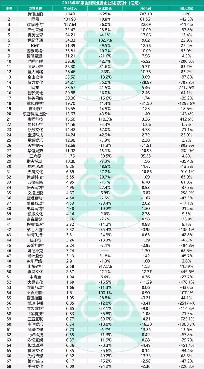 魔域一起底68家游戏上市公司的2018:1/3在亏钱,最高亏70亿