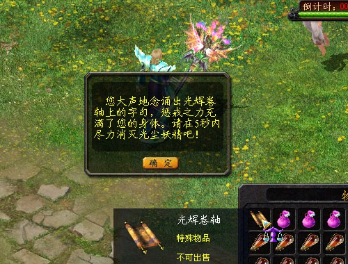 这里的神仆则是要我消灭光尘妖精。这些妖精就藏在花园的谷地里。光是杀死她们还不行,必须先使用光辉卷轴,在卷轴神力持续的时间内消灭她们才能彻底封印她们的灵魂。