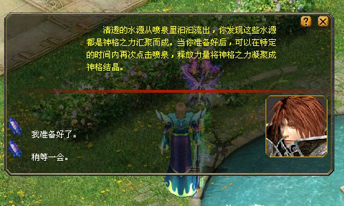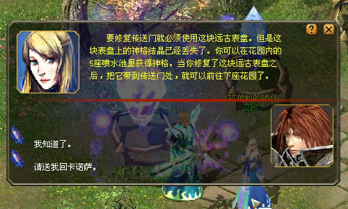 从神仆那里获得了一块远古表盘。只要从5个喷水池处分别取得神格结晶嵌入表盘,就可以完成任务,修复传送门了。听起来好像非常简单?
