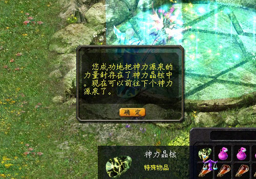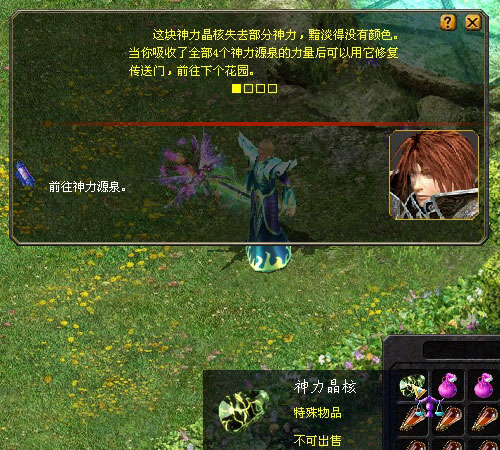 原来还要在规定的时间里使用神力晶核封闭能源。小心地从4个神力源泉上分别吸满了能源之后,就可以带着神力晶核前往下座花园了。