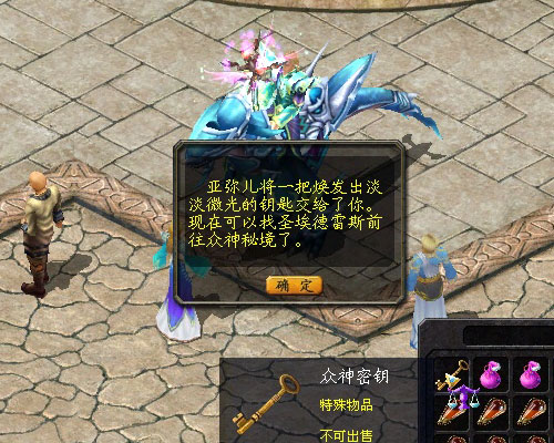 2、带着众神密钥找到众神秘境看守者 圣埃德雷斯,进入众神秘境。