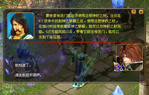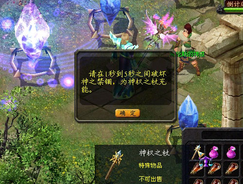 原来,还是为了修复传送门。只要将这根神权之杖挥动之后,在效力消失前摧毁神之禁锢,就可以解开传送门的封印,前往下个花园了!
