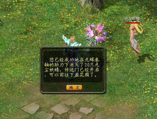 消灭20只光尘妖精就可以了。拿着光辉卷轴来到传送门,果然可以去下个花园了。