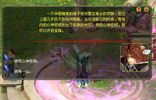来到了第二座花园。这里的神仆微笑着提醒说,从第二座花园开始,每座花园里都有一个宝箱!不过,开启这些宝箱也是要消耗众神密钥的,也就是说,如果开启了这些宝箱,虽然可以拿到里面的宝藏,但同时也会被送出众神秘境。