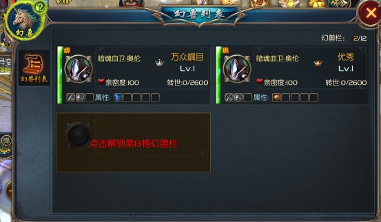 当你刚进入游戏时,可出征1只幻兽为你助战,幻兽会配合你的攻击动作,甚至可以主动向周围的怪物发动攻击。当然了,你不能轻易让它们身陷险境,幻兽虽然强大,但也会死亡,并且幻兽的死亡次数多了还会导致你与它的亲密度下降。