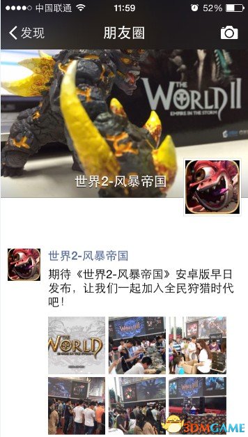 朋友圈截图:(至少转发2张图片+ 对《世界2-风暴帝国》安卓版本的期待心语)