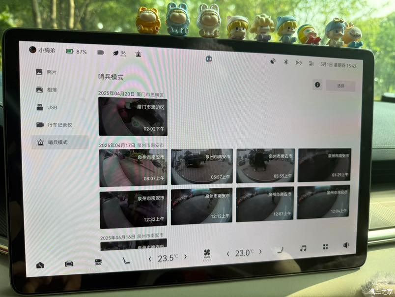 真实感受:这个功能也超实用!每次停路边或者陌生地方,开启哨兵模式后,车子会实时监控并记录周围动静,万一有人划车或者碰撞,立马报警并记录保存视频。