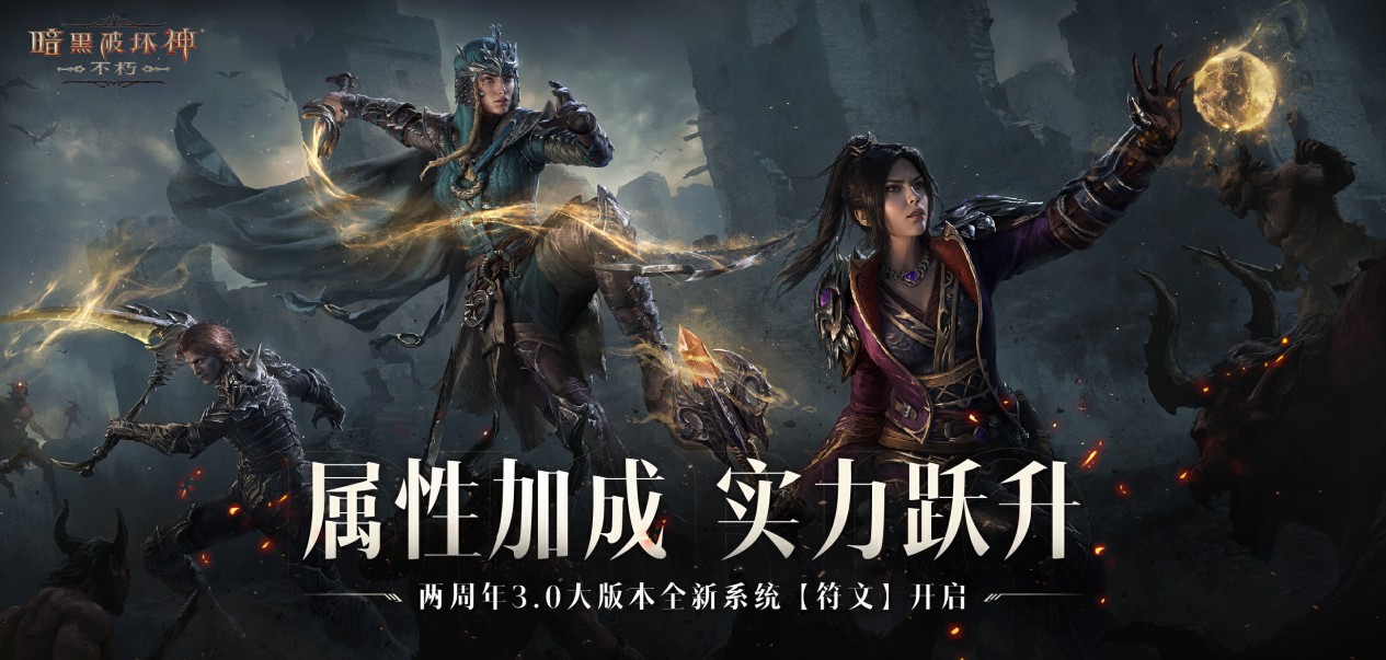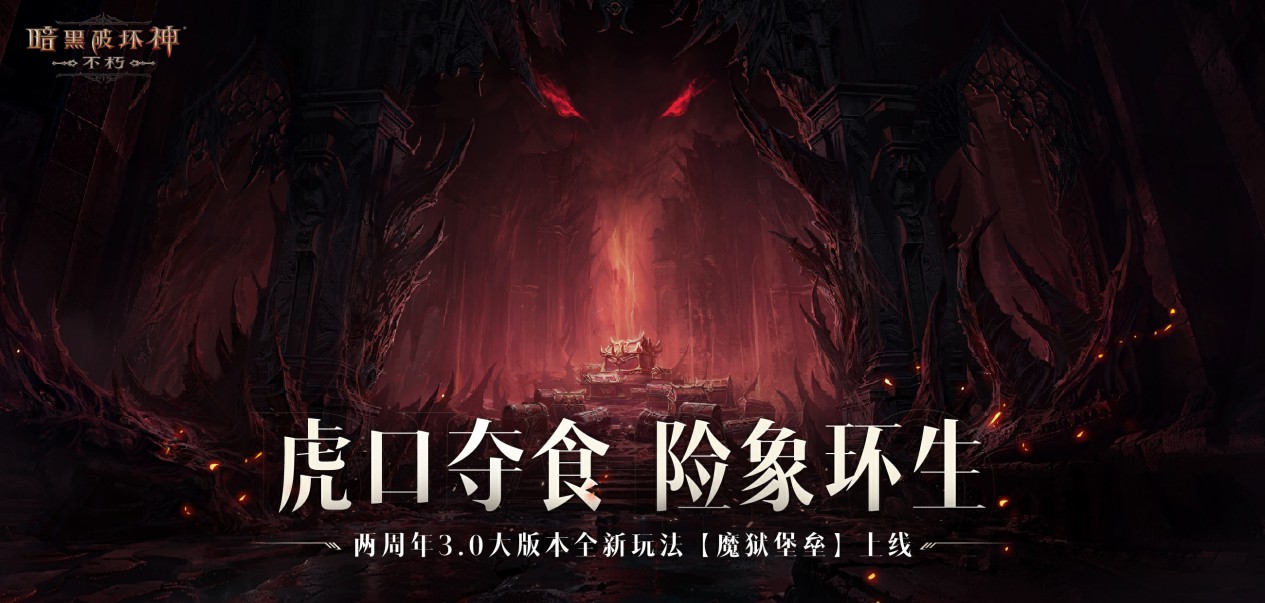 关于《暗黑破坏神:不朽》冒险者们,两周年快乐,愿圣光永远伴随着你!《暗黑破坏神:不朽》两周年3.0大版本【深渊之噬】6月13日正式登场!恐惧之王迪亚波罗亲自创造的邪恶空间——【魔狱】侵入庇护之地,【魔狱迷踪】及【魔狱堡垒】玩法上线,四大全新魔神联袂来袭,风带着警戒的讯息吹遍世界,每一个生灵都明白——邪恶入侵,大敌当前!正义的力量已经准备放手一搏,全新符文系统开启,争分夺秒,抓紧备战;全新伊纳瑞斯传奇时装【永恒审判】,见证大天使的陨落;新传奇宝石【风暴之穹】现世,毁天灭地,一念之间。冒险者究竟能否重现奇迹,绝地翻盘?