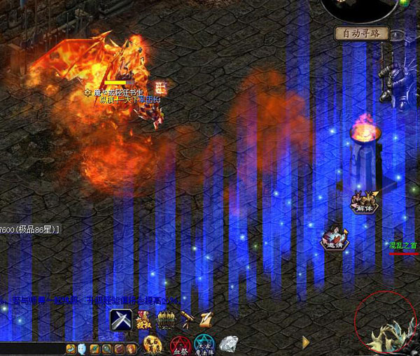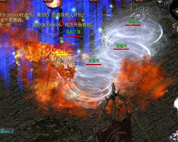 就这样一路杀过去,千万不要被龙卷风卷到,杀伤力很强大的,杀到最大的大怪别杀死,引到另一边去,点这个人大怪会出来: