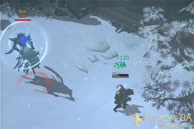在空旷的冰原上,有白色的光束射下,我们在经过的时候会受到冰冻光束的减速效果,移动速度变缓慢。牧师可以采用群体解控技能,帮助团队快速通过这段路。